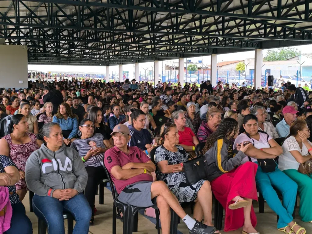 Famílias da comunidade e de regiões vizinhas se reuniram para a entrega de cestas básicas, na 5ª Ação Solidária de Final de Ano do Programa Abadia sem Fome, beneficiando diretamente 1.500 famílias que já são assistidas pela Secretaria do Bem-Estar Social e Habitação.