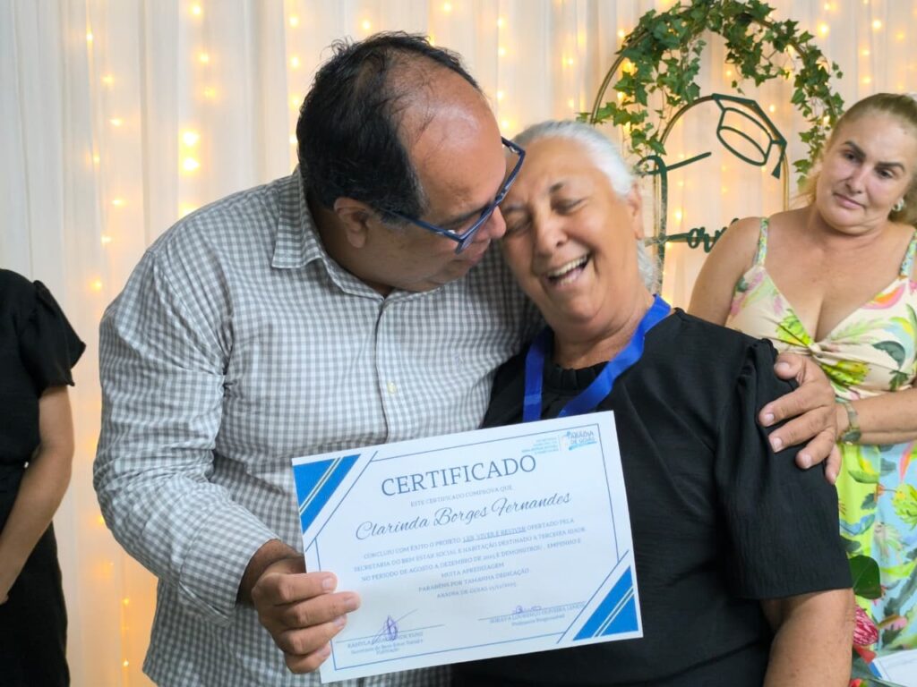 Emocionada, a formanda Maria Aparecida, de 52 anos, conta: “Não existe idade para aprender!”
