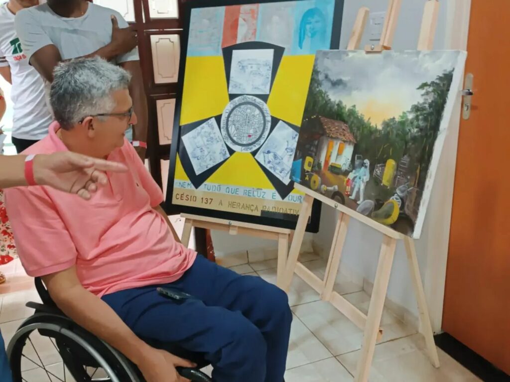 O conjunto de telas é composto por Ilusão Azul, de Bento Cassiano; Bosque dos Buritis, de Dalmo Antônio; O Brilho da Morte, de Demirane Rodrigues; As Mãos do Césio, de Deni Vilela; Inesquecível e Sensível, de Eliane Quintais; Fascínio Azul da Dor, de Eloá Moraes; Griss, de Fábio Prado; Memórias e Cicatrizes, de Ivana Martins; Cuidado Radioativo, de Josias Sousa; O Visor e a Sedução, de Lionizia Goyá; Pai Mostrando Objeto à Filha, de Luzia Cândida; Nem Tudo que Reluz é Ouro, de Maria Francisca; Leide das Neves, de Nonato Coelho; Homenagem à Leide das Neves, de Papas Stefanos; Reflexo Reflexões, de Pedro Galvão e Antonia Paula; Caesius Céu Azul, de Rose Rocha; Césio 137, de Valdir Ferreira; Memória Riscada, de Waltterdann Guedes; e Césio 137, de Vânia Ferro.